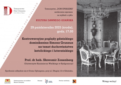Wykład w Domu Uphagena Towarzystwo Dom Uphagena zaprasza serdecznie w środę, 10 grudnia 2025 o godzinie 17.00 na wykład z 21. cyklu „Kultura Dawnego Gdańska”. Dr Magdalena Mielnik (Muzeum Narodowe w Gdańsku) wygłosi prelekcję na temat: Królewska Szkoła Sztuk Pięknych w Gdańsku 1803-1893 i jej wychowankowie. Wykład odbędzie się w siedzibie Towarzystwa: Dom Uphagena, Oddział Muzeum Gdańska, ul. Długa 12. Wśród słuchaczy jak zwykle rozlosujemy ... więcej »Kreatywna twórczość